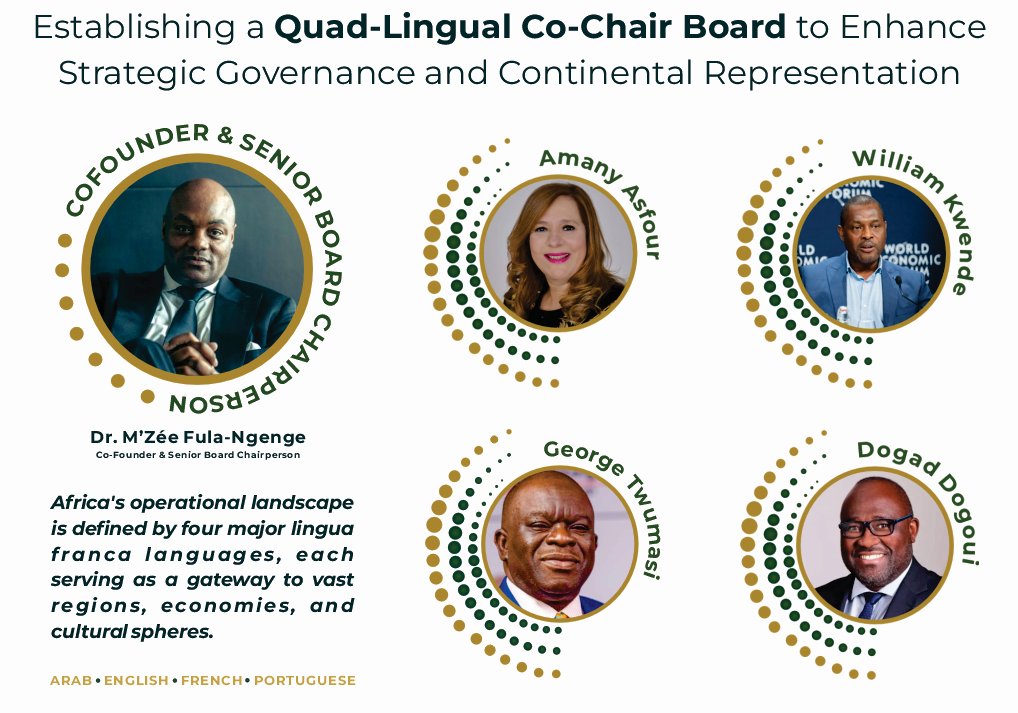 • This Four-Pillar Co-Chair model moves beyond symbolic inclusion to create a strategic asset. It builds a leadership team that, by its very structure, possesses the linguistic keys and cultural maps to navigate the entirety of Africa's complex and vibrant landscape, driving more effective and representative governance
